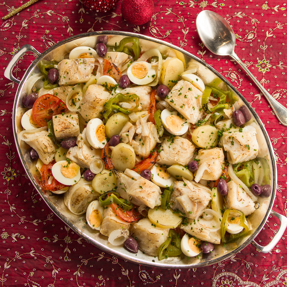 Bacalhoada Tradicional (Tomate- Cebola- Batata- Ovo- Azeitona e Alho Frito)
