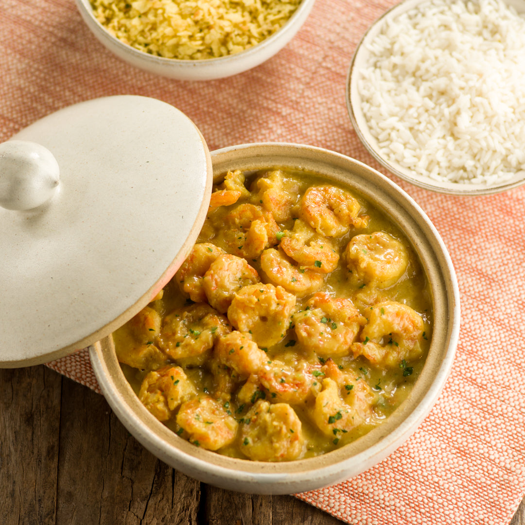 Prato típico da Ásia Meridional, com camarão cozido em leite de coco e curry. Um sabor exótico e cremoso que vai te surpreender!