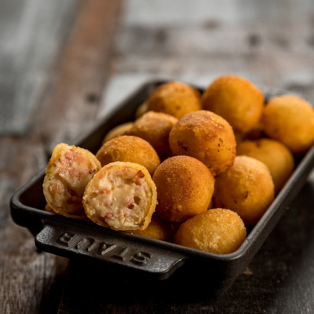 Famoso tapa espanhol recheado com Jamón ibérico. Aconselhamos mergulhar em nosso Molho de Pimenta Caseira.