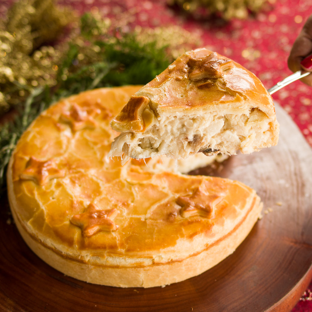 Nossa Torta de Bacalhau é a nova versão das nossas tortas, pensada especialmente para as festas de fim de ano. Com uma massa deliciosa, super sequinha e crocante, esta torta é recheada com um cremoso bacalhau com natas, proporcionando uma combinação perfeita de sabores e texturas.